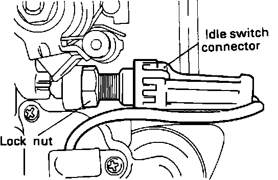 7. Tighten the lock nut and connect the idle switch connector.