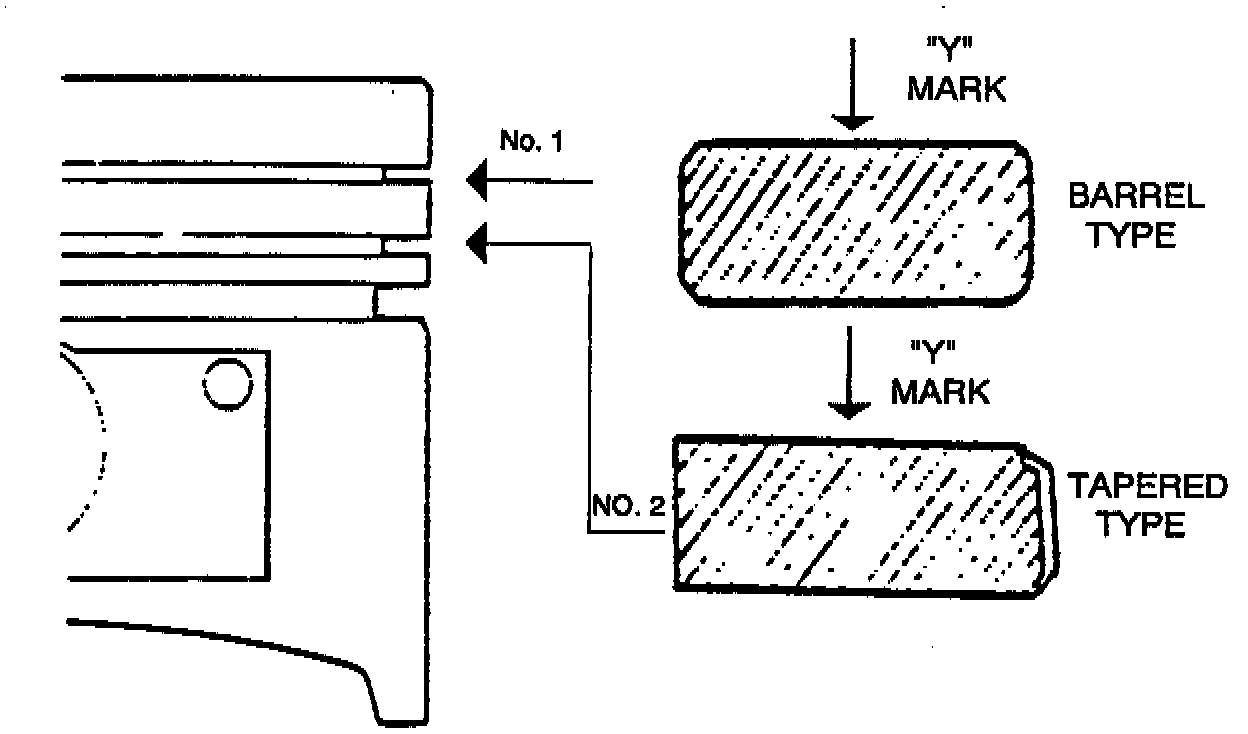 The # 2 ring is a tapered ring that is black in color. It should be installed with the "Y" make facing up.