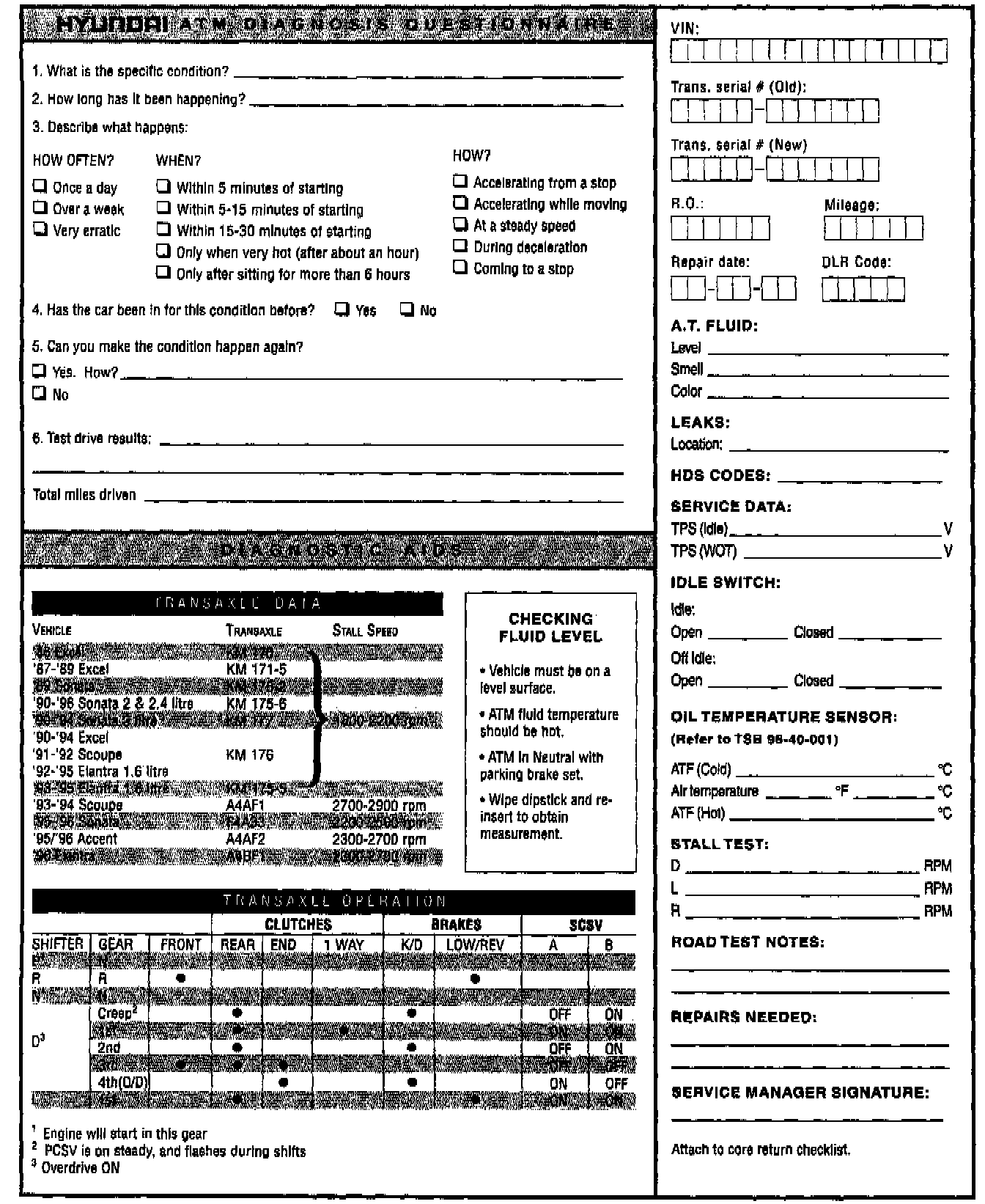 19. The ATM Diagnosis Questionnaire must be attached/retained with the shop copy of the RO in the Dealership's VIN service files. Dealership must record the removed and remanufactured ATM serial numbers on the shop copy of the RO.