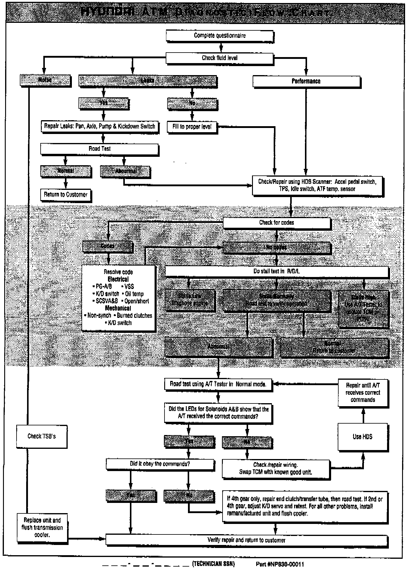 4. Technician follows Diagnostic Flow Chart on the back of the Questionnaire to help complete the diagnosis of the ATM and to make a repair/replace decision.