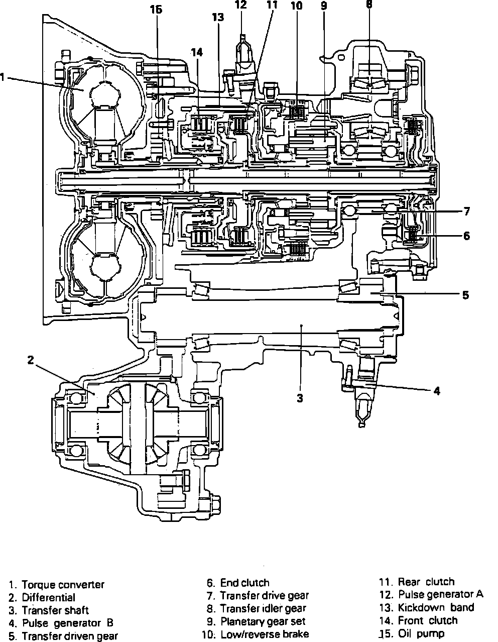 Fig. 4 Automatic Transaxle Sectional View. 1989 KM177 Transaxle: