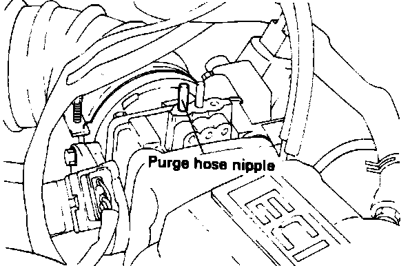 The fuel pump drive terminal (shown hooked-up) is located on the right side of the engine compartment behind the air cleaner housing.
