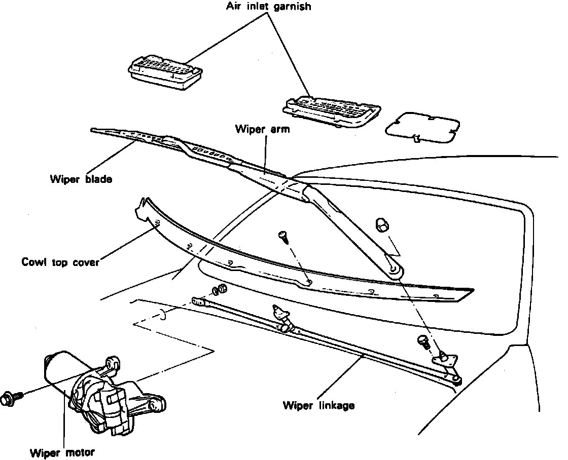 2. Remove wiper motor assembly, then disconnect linkage from motor assembly and remove linkage assembly. Mark position of crank arm to wiper motor, if necessary to remove.