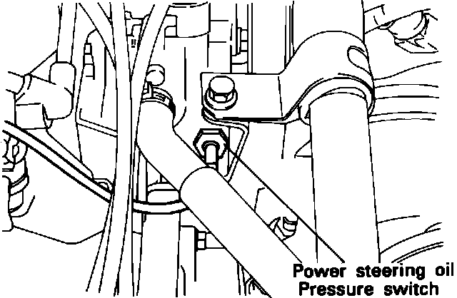 To test the Power Steering Switch remove the connector and test the terminal for ground with a continuity tester (ohmmeter). With the engine running and the power steering under a load (steering wheel being turned from stop to stop) there should be a ground, with no load (steering wheel centered and stationary) there should be no ground.
