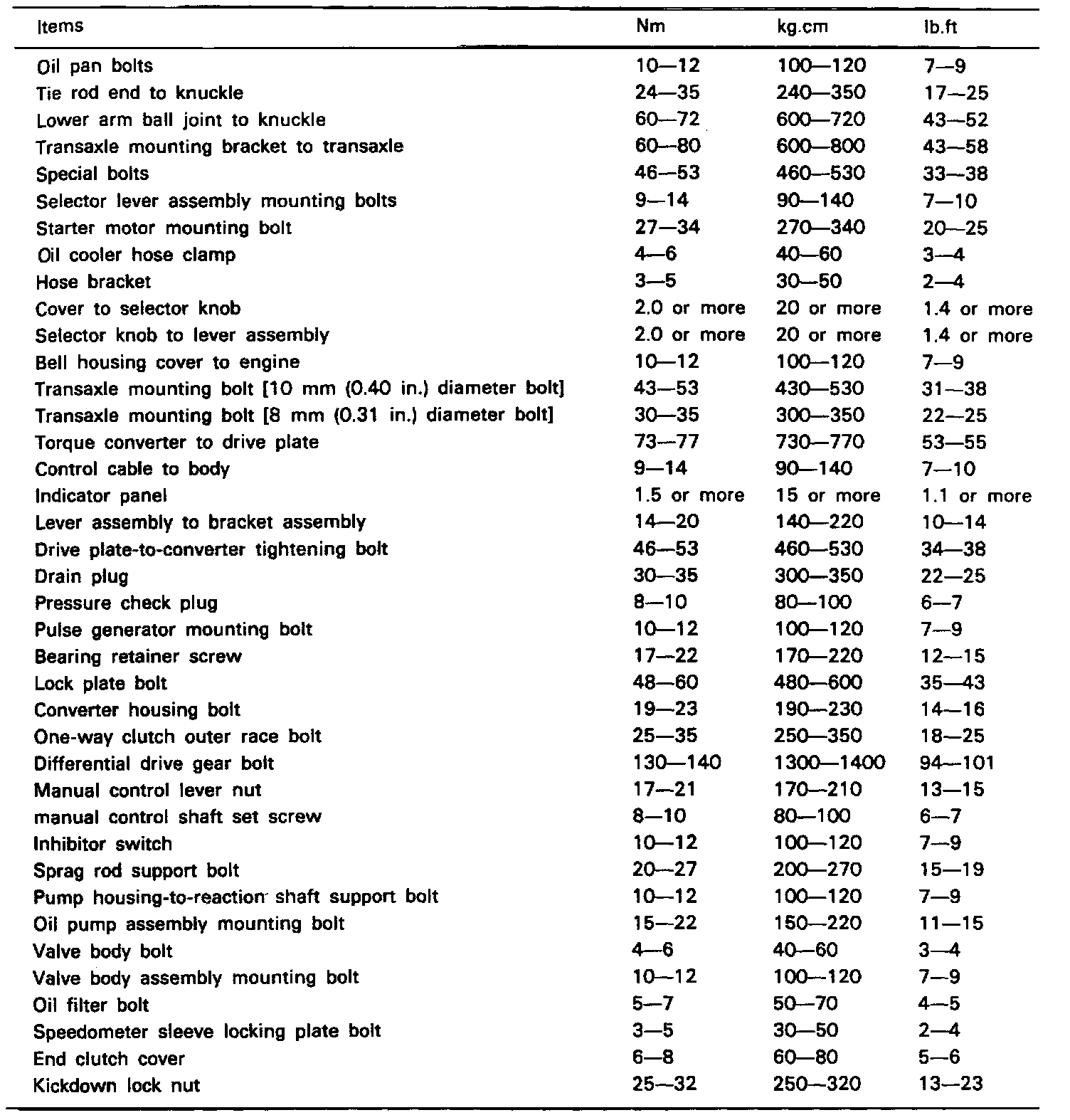 A/T Torque Data