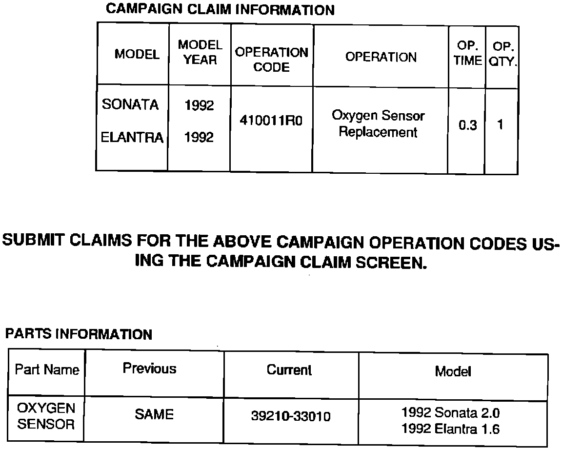 This bulletin describes the procedure for the replacement of the oxygen sensor on 1992 Model California specification Sonatas and Elantras equipped with four cylinder engines.
