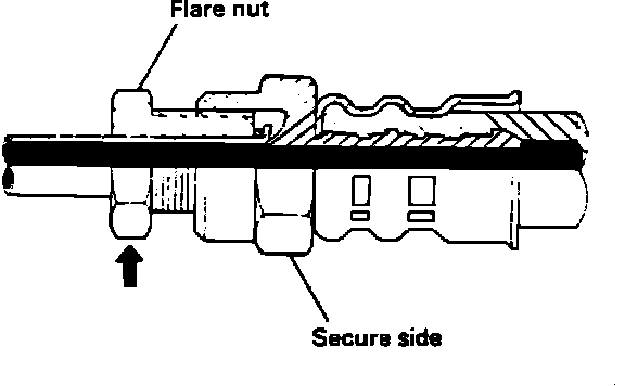CAUTION: When tightening the flare nut, be careful not to bend or twist the line.
