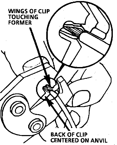- Center the back of the splice clip on the proper anvil and close the crimping tool to the point where the former touches the wings of the clip.