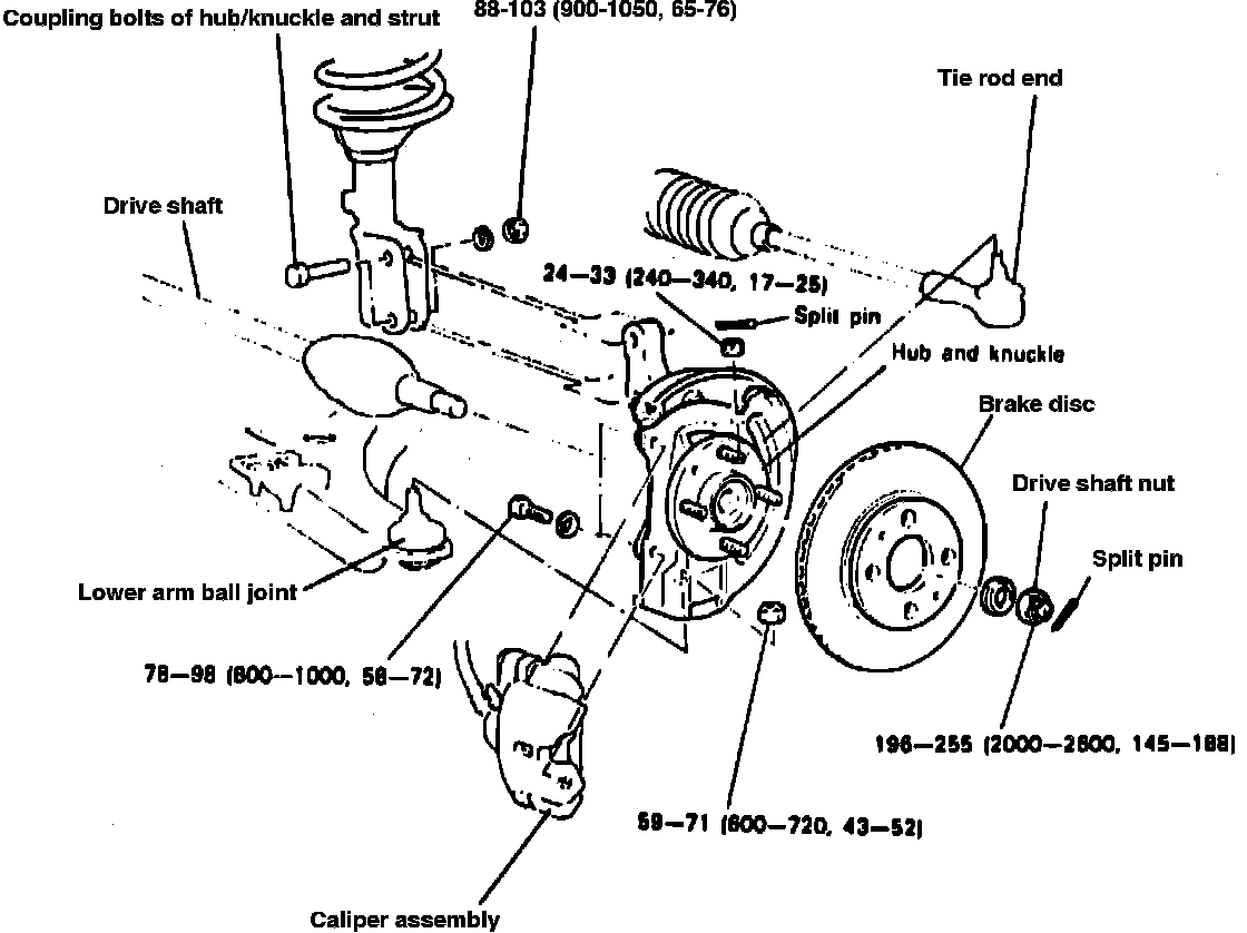 1. Remove driveshaft nut, then Raise and front of support vehicle. Remove front wheels.
