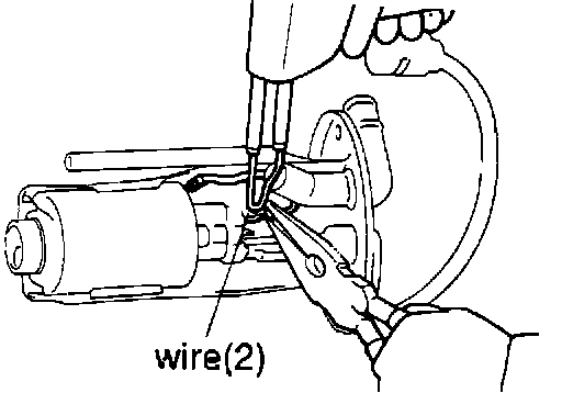 5. Disconnect the wire (2) from fuel pump by heating the soldered connection with a soldering iron.