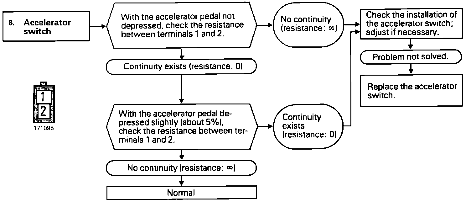 Accelerator switch or circuit harness malfunction.