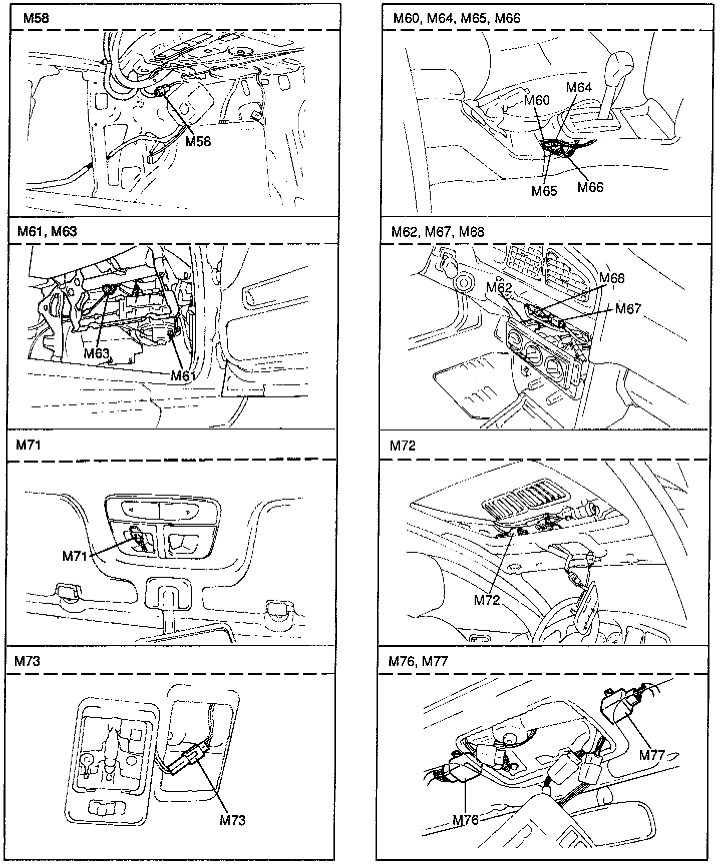 Component Locations: M58 Thru M77: