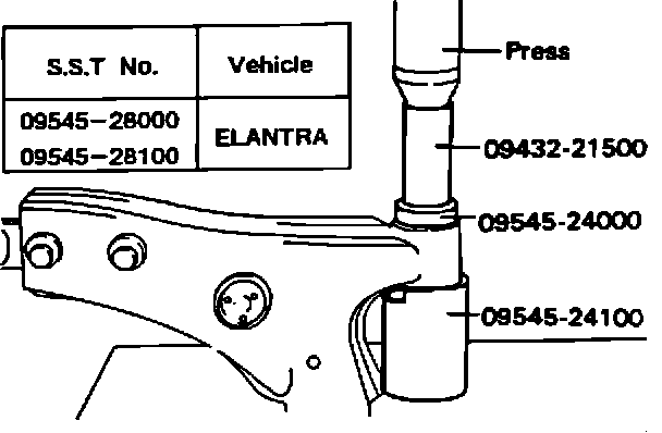 5. Press the new bushing into the lower arm using the same special service tools.