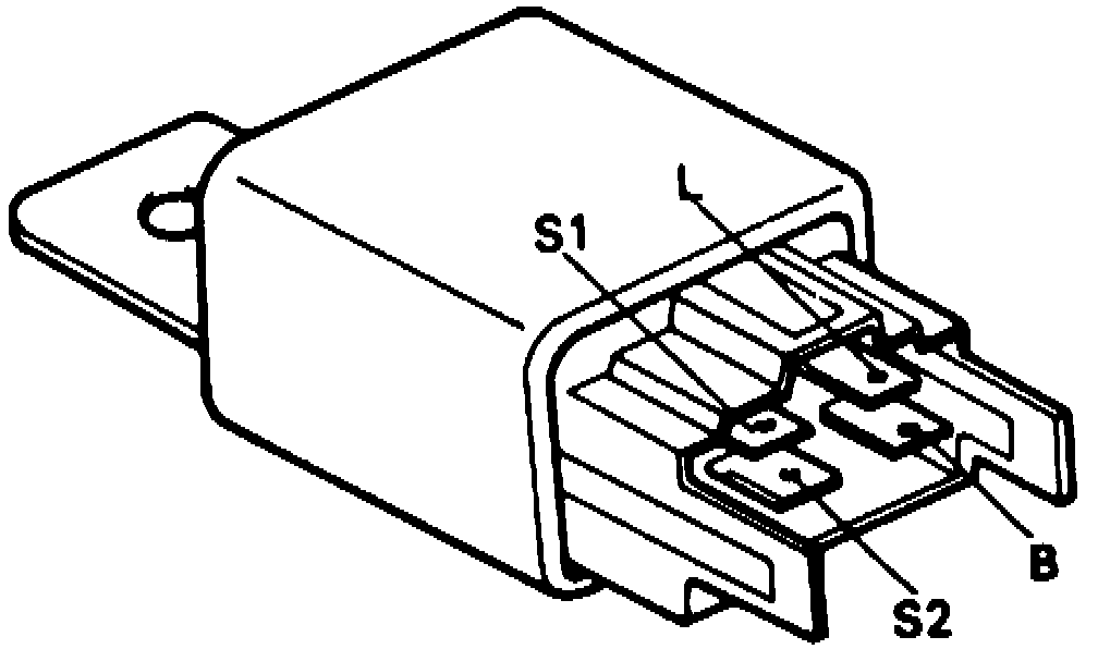 2. Apply 12 volts across terminals S1 and S2, then check for continuity between terminals "L" and "B". Replace as necessary.