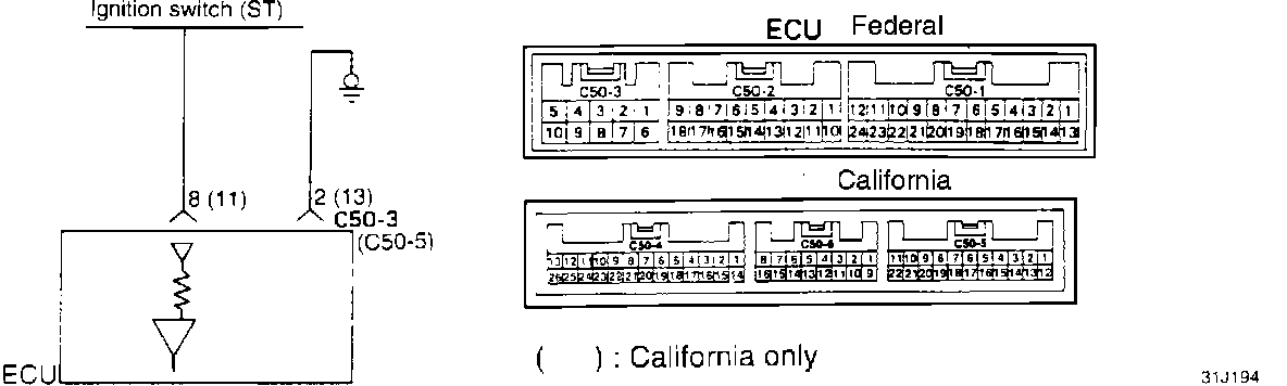 The ignition switch supplies "On" and "Start" information to the ECU to position the idle speed control components. The ignition switch "ON" signal is provided to the ECU through the control relay.