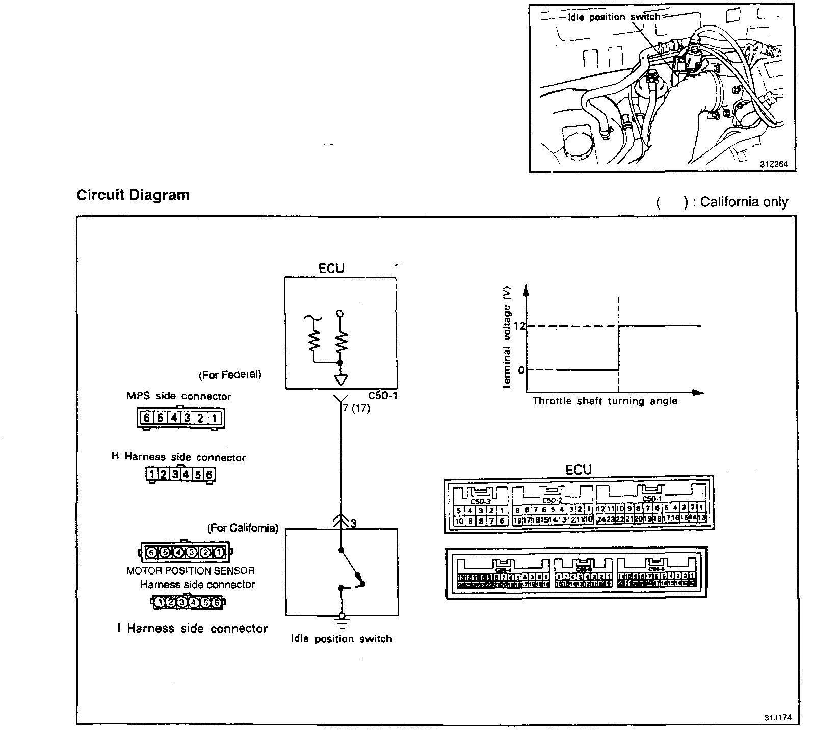 3. Depress the accelerator off the idle position and check for continuity, there should be none (infinite ohm). Release the throttle to the idle position and test for continuity again, there should be continuity (0 ohm).