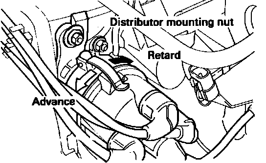7. If necessary loosen the distributor mounting nut and adjust timing by rotating the distributor.