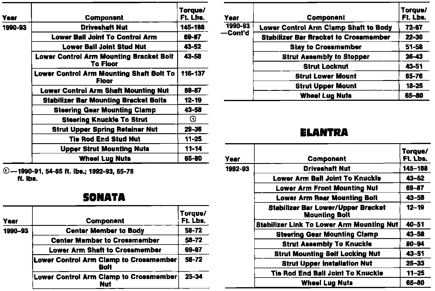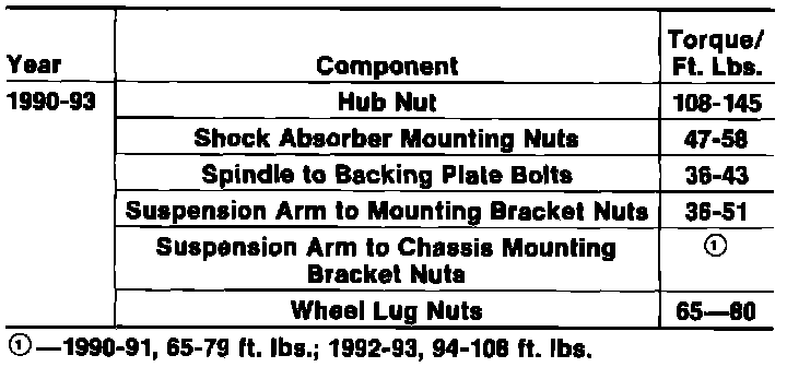 Torque Specifications: