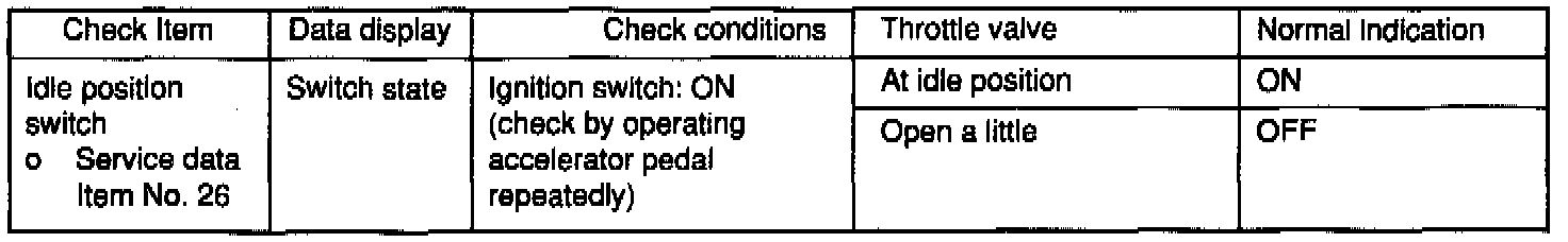 If the idle position switch harness is OK, but the idle position switch output is abnormal, check for the following items.