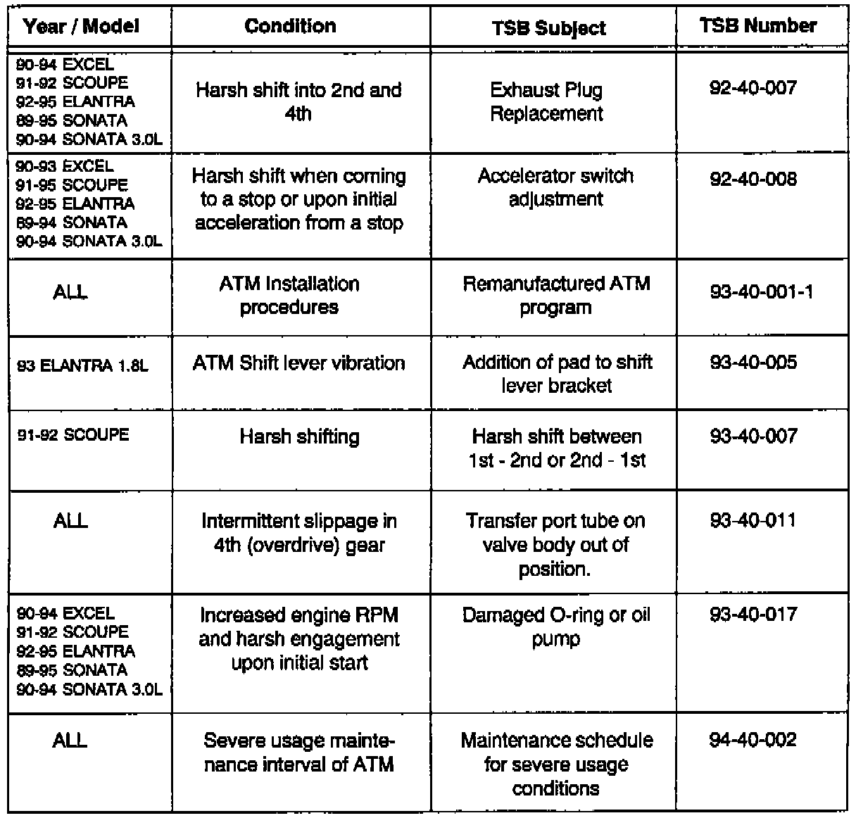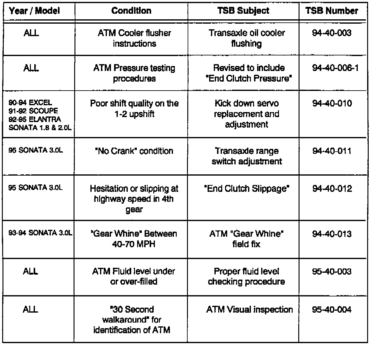 This bulletin provides an information reference for use when servicing automatic transaxles. Please review individual technical service bulletins for applicable service procedure details.