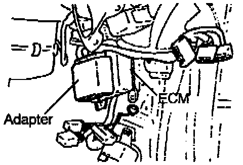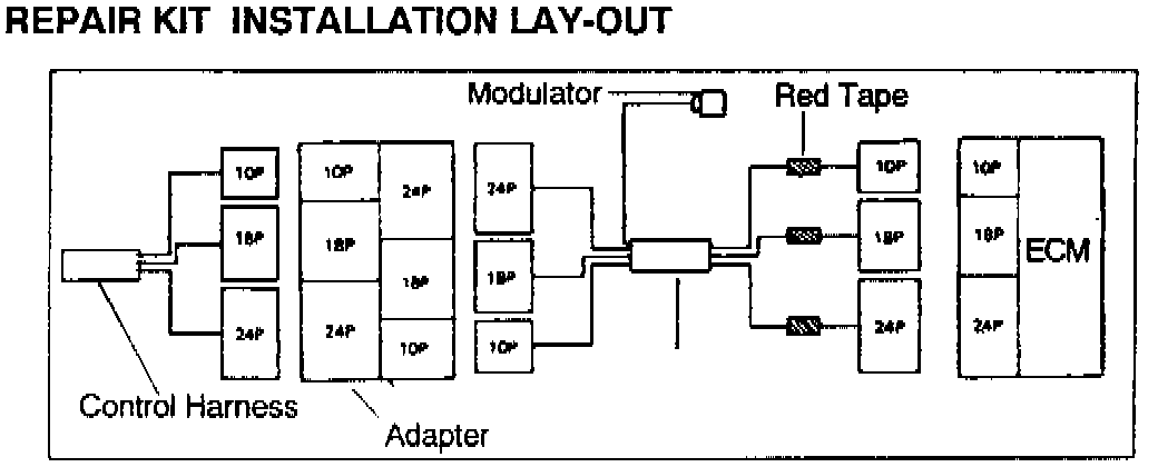 9. Connect the extension harness connectors (red-taped side) to the ECM and the control harness connectors to the adapter of the repair kit.
