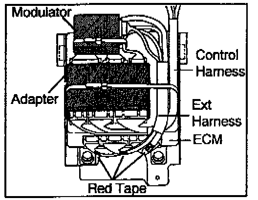7. Strap the modulator and the extension harness together as shown in the illustration.