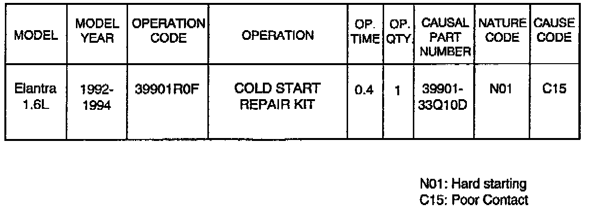 Cold Start 39901 - 33Q10D 1992-1994 ELANTRA