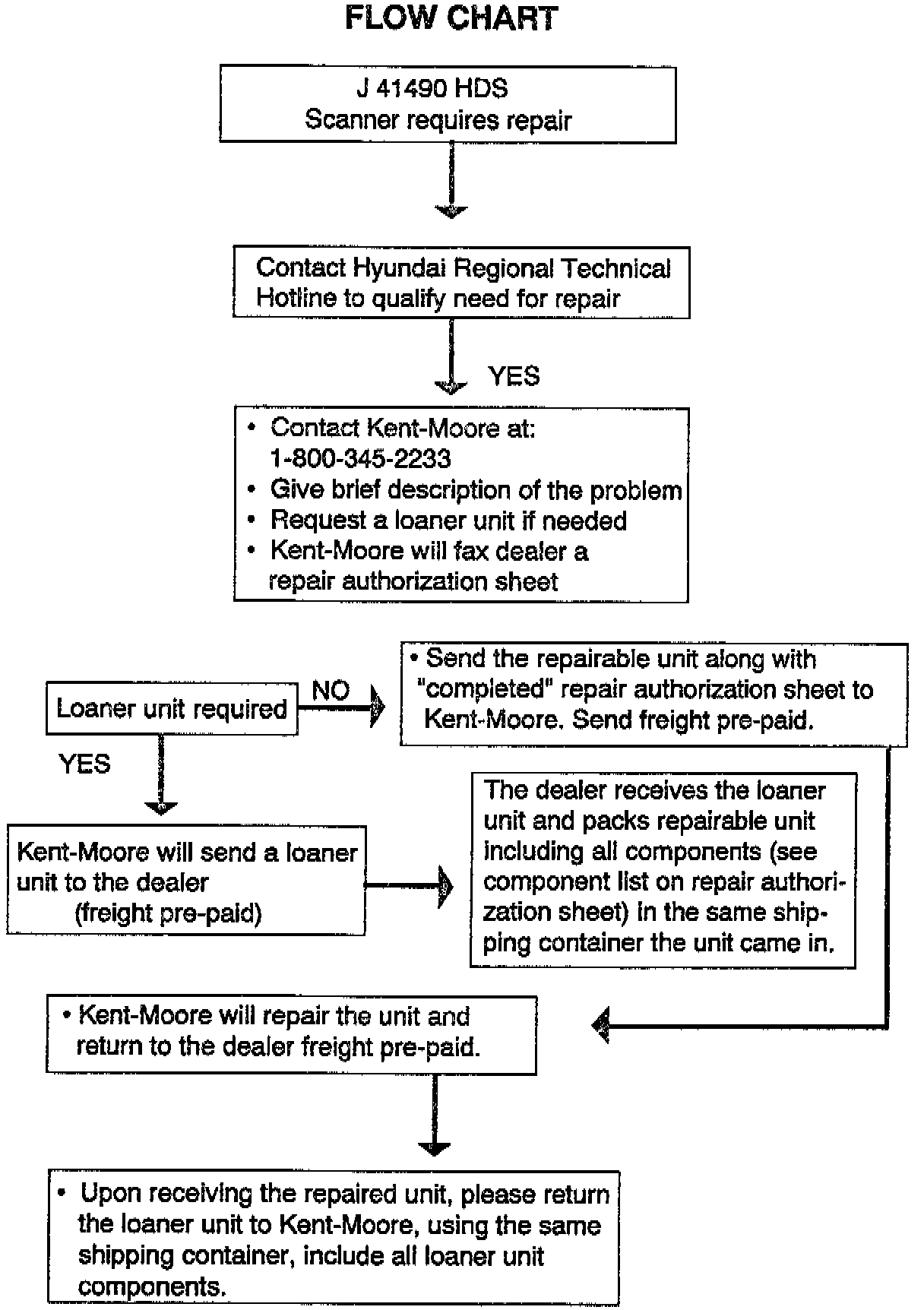 Hyundai has arranged with Kent-Moore to provide, free of charge, a loaner "Hyundai Diagnostic Scanner" if your unit should need repair during the warranty period.