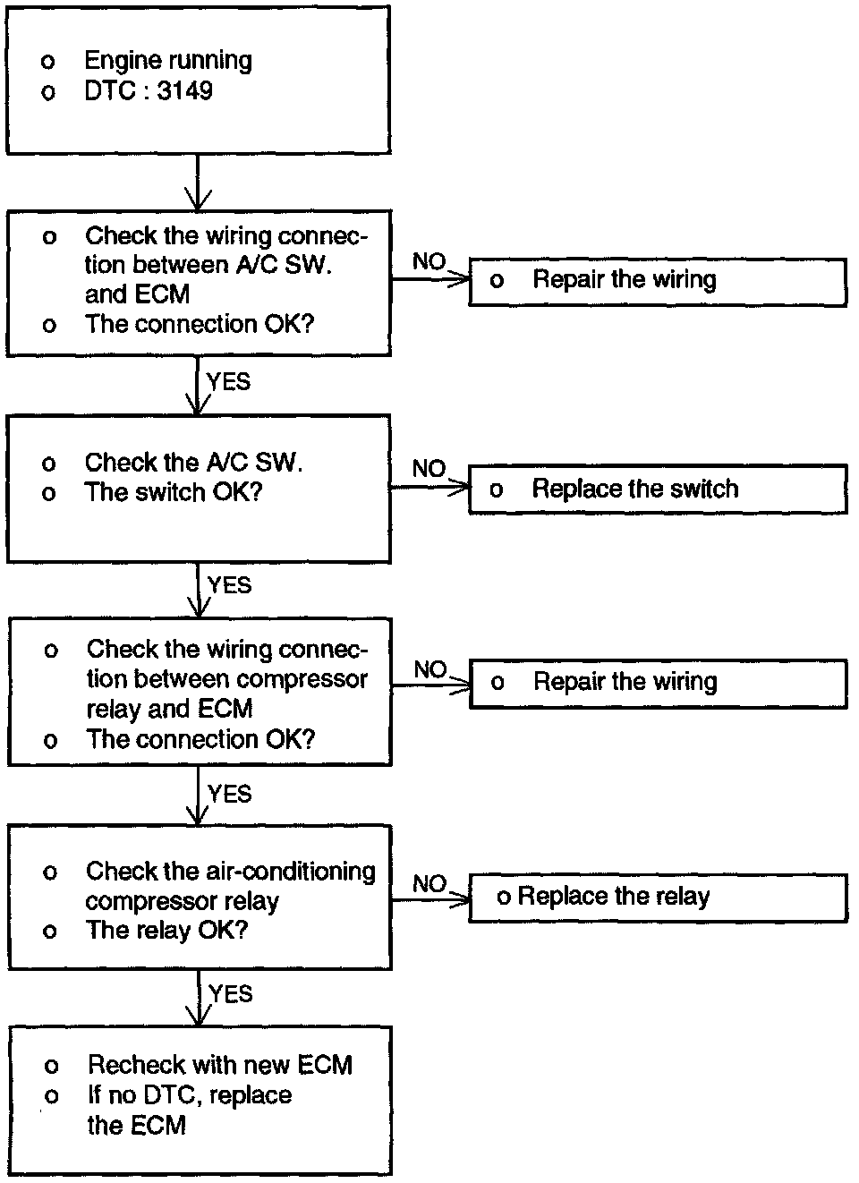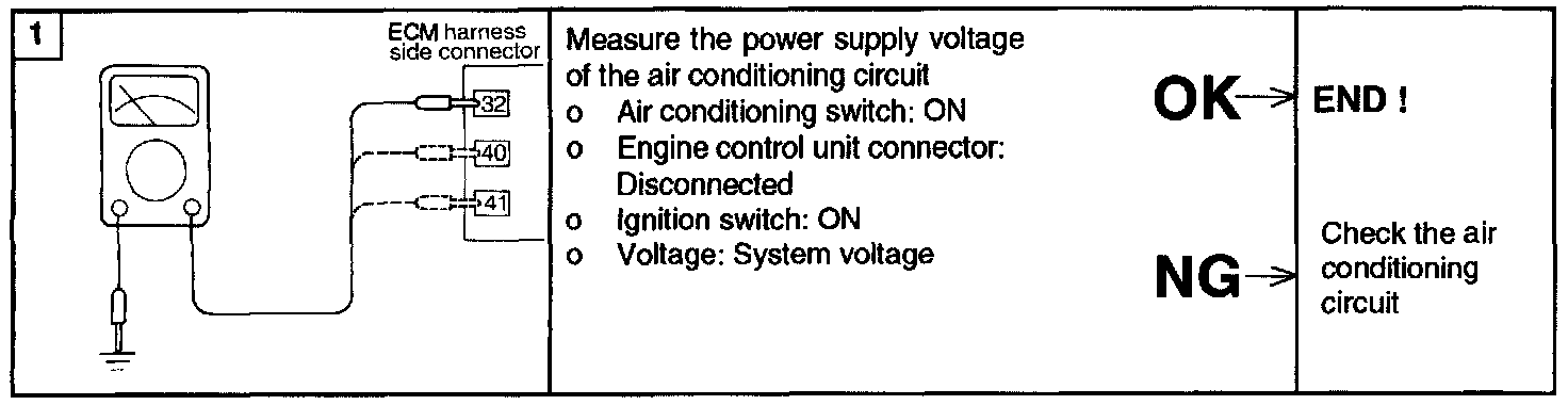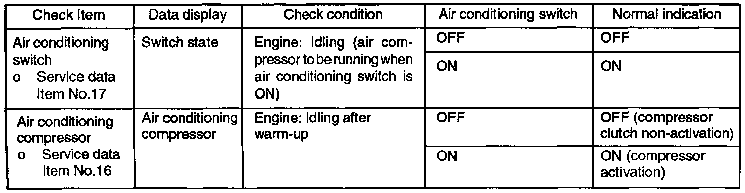 If the air compressor magnet clutch is not activated when the air conditioning switch is turned on during idling, faulty air conditioning control system is suspected.