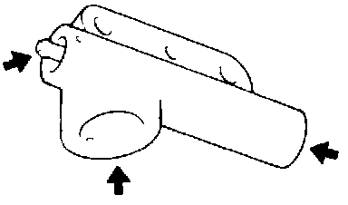 8. Check to ensure that when center of span on the tension side is depressed with index finger in direction of arrow, deflection of belt is within specification. Belt deflection 5 - 7 mm (0.2 - 0.3 in).