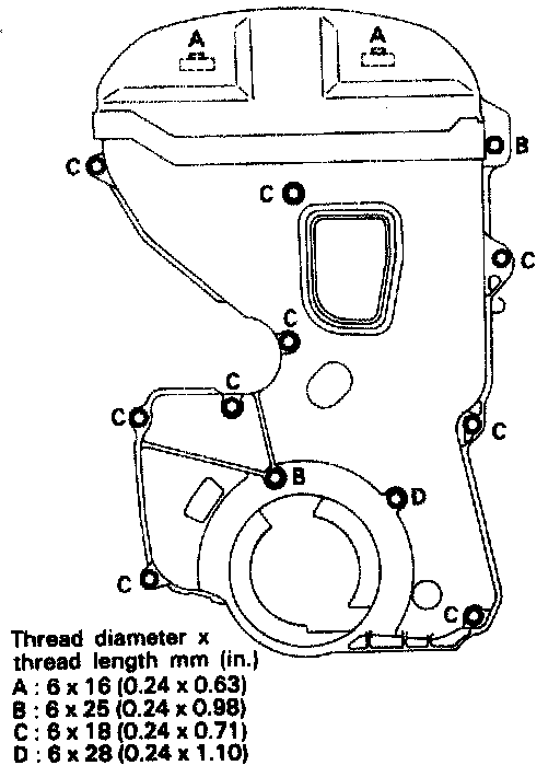 6. When the oil pump sprocket nut is removed, first remove the plug at left side of the cylinder block and insert a screwdriver to keep the left counter balance shaft in position. Screwdriver used for this purpose should have a shaft 8 mm (0.3 in) in diameter which can he inserted more than 60 mm (2.36 in).