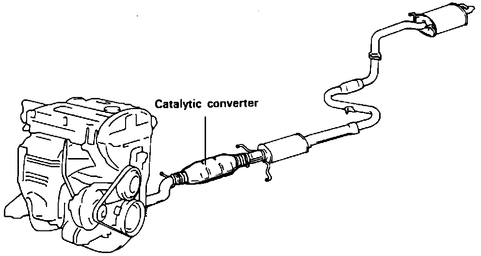 The catalytic converter is located downstream of the exhaust pipe.