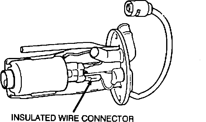 Note: The non-insulated connector connects to the negative (-) terminal of the fuel pump. The insulated connector connects to the (wider) positive (+) pump terminal.