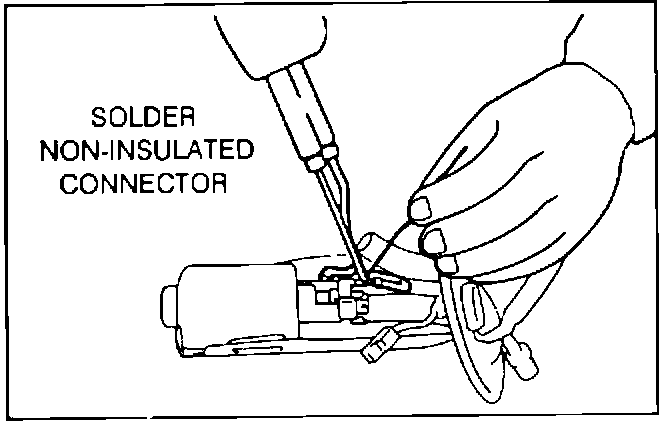 WARNING: The non-insulated connector MUST BE SOLDERED to the fuel pump when reconnected. If the connector is not soldered, the potential for EXPLOSION AND FIRE of the fuel tank exists when the fuel pump is powered.