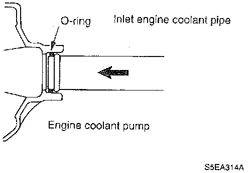 2. stall the new O-ring onto the groove on the front end of the engine coolant pipe, then wet the O-ring with engine coolant. Do not apply oil or grease.