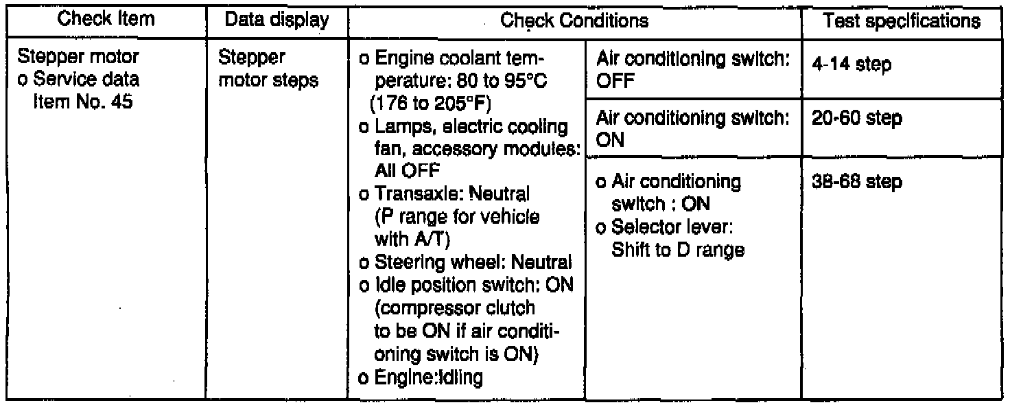 1. Check for the sound of the stepper motor after the ignition is switched ON (but without starting the motor).