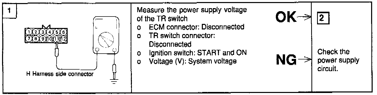 If the TR switch harness check is normal but the TR switch Output is abnormal, check for the control cable adjustment.