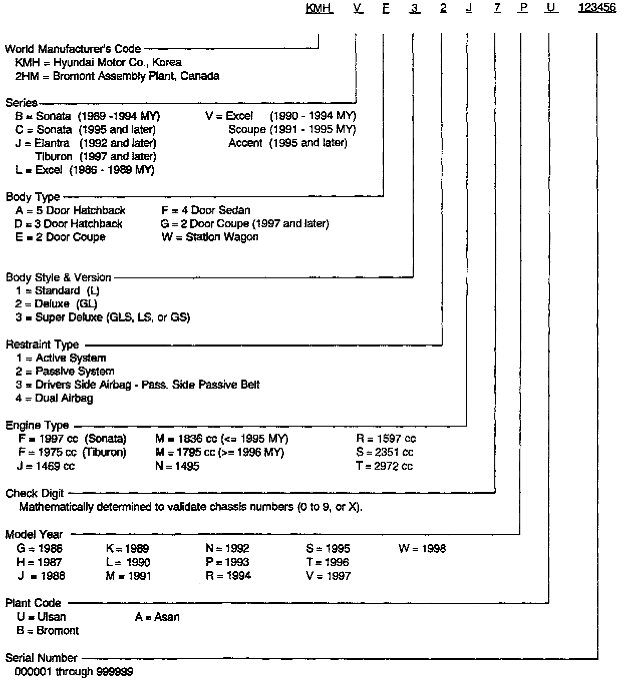 This bulletin provides information concerning the vehicle identification number of all Hyundai vehicles.