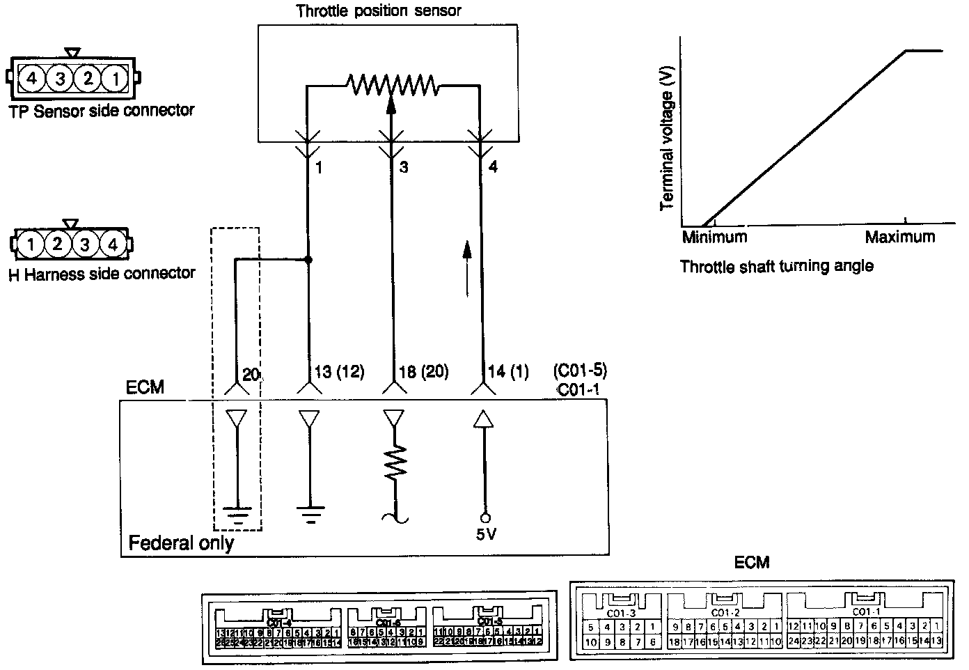 The Throttle Position Sensor signal is important in the control of automatic transaxle. Shift shock and other troubles will occur if the sensor is faulty.