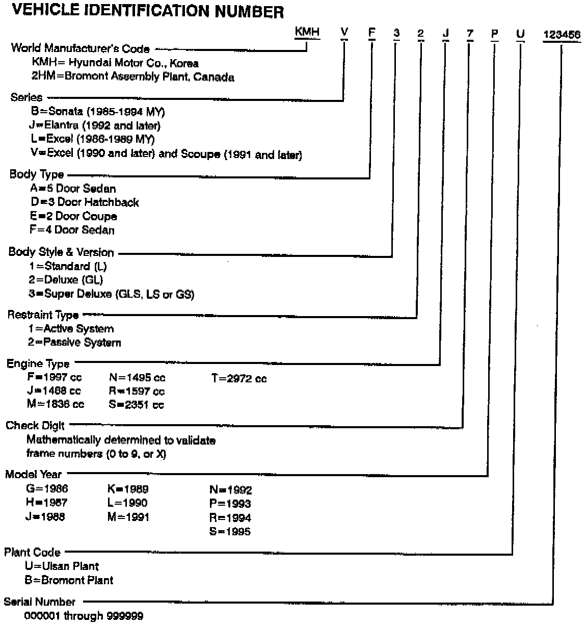 This bulletin provides the information necessary to decode the vehicle identification number of all Hyundai vehicles.
