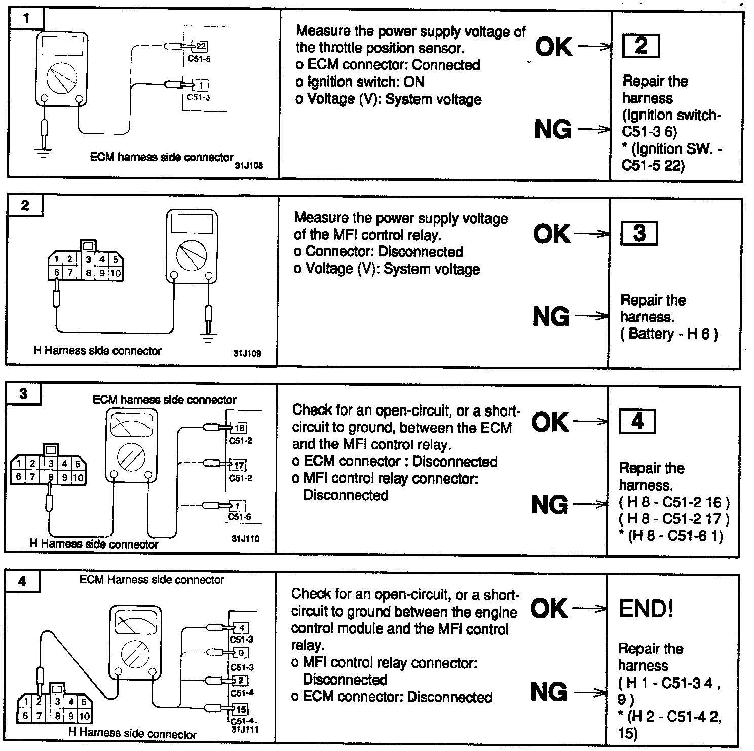4. If one of the above is improper, replace the multipoint fuel injection control relay.