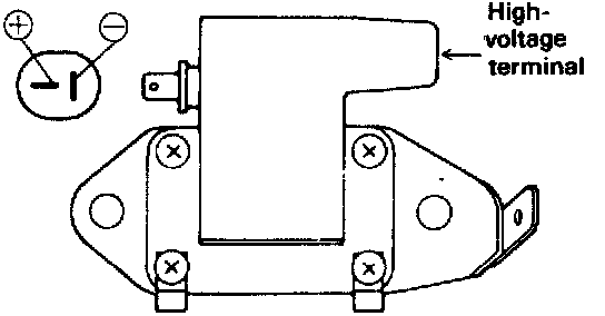2. Measure the resistance between the ignitions coil's positive (+) terminal and the high voltage terminal/