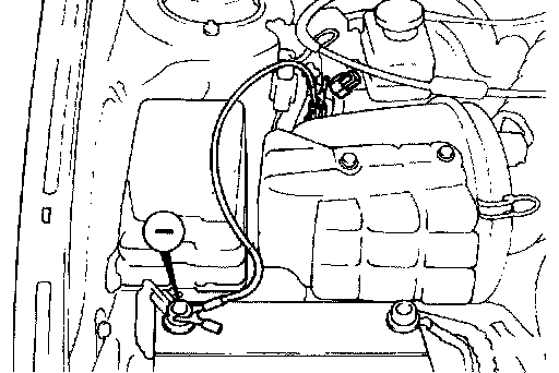 3. With the engine stopped, connect a lead wire alligator clips to the terminal for ignition-timing adjustment (located in the engine compartment), and ground it.