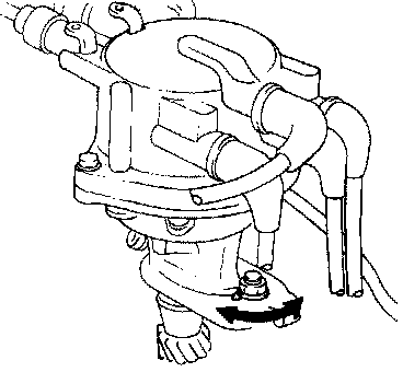 NOTE: The ignition timing will be advanced if the distributor is turned to the right and retarded if it is turned to the left.