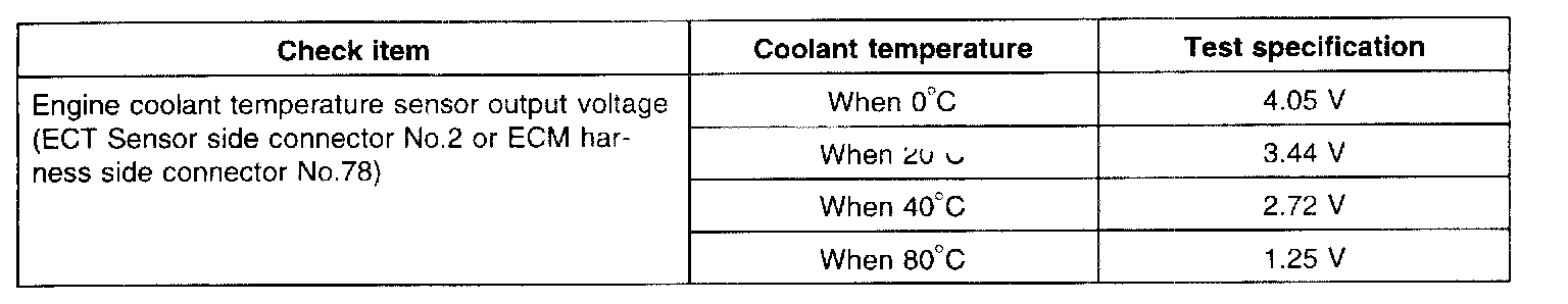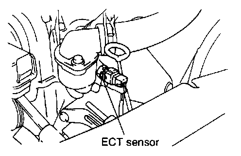 ENGINE COOLANT TEMPERATURE (ECT) SENSORThe engine coolant temperature sensor is installed in the engine coolant passage of the cylinder head, detects engine coolant temperature and emits signals to the ECM. This part employs a Thermistor which is sensitive to changes in temperature. The electric resistance of a Thermistor decreases in response to temperature rise. The ECM judges engine coolant temperature by the sensor output voltage and provides optimum fuel enrichment when the engine is cold.