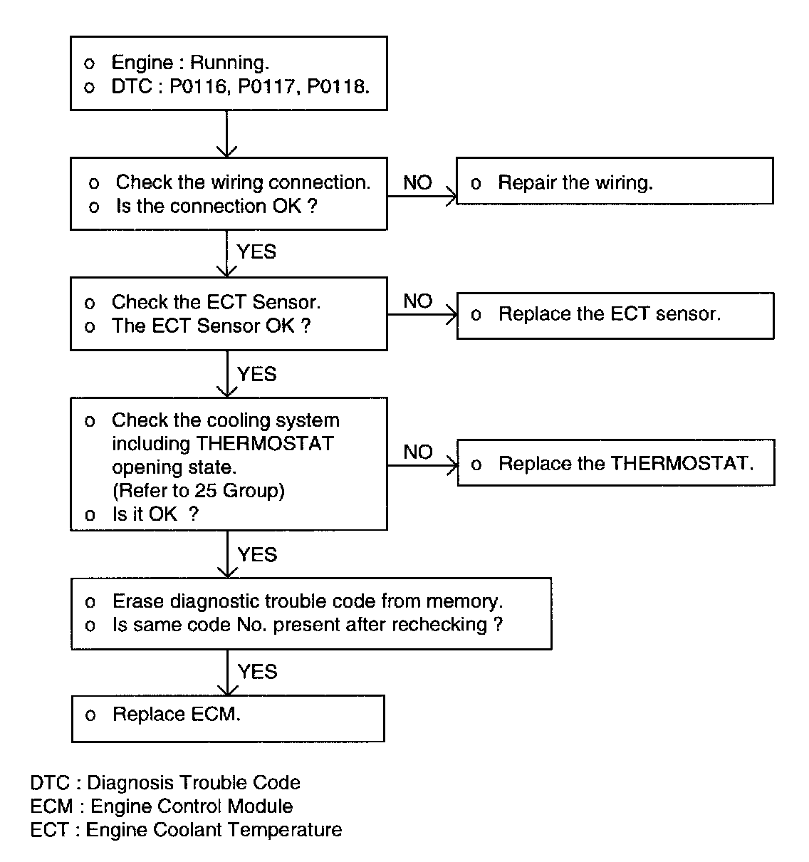 If the fast idle speed is not enough or the engine gives off dark smoke during the engine warm-up operation, it might be caused by the engine coolant temperature sensor.