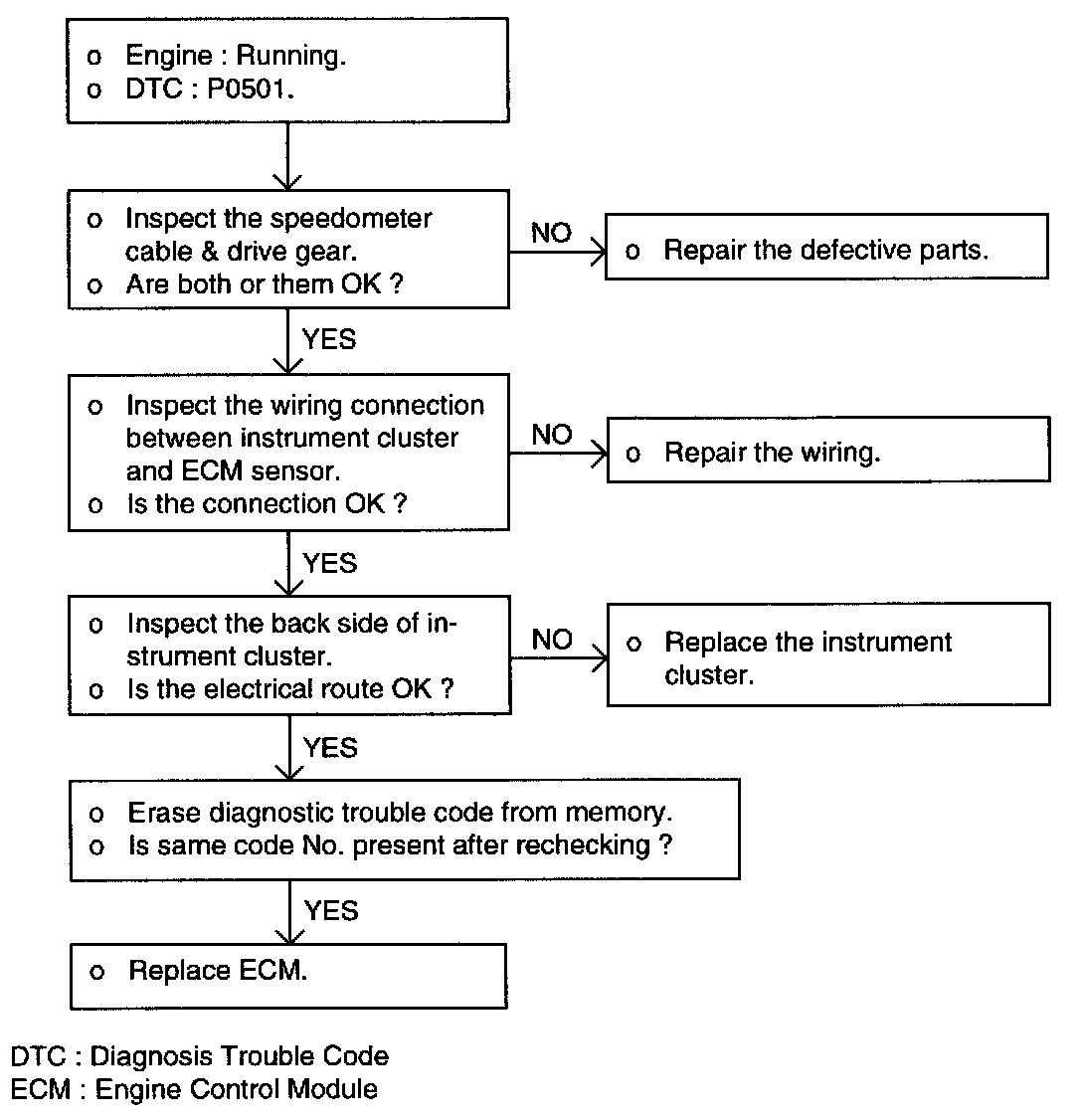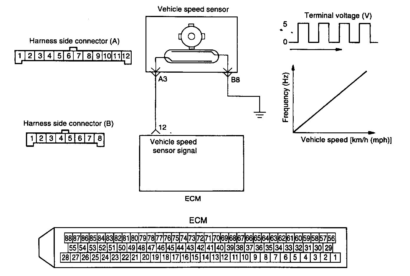 VEHICLE SPEED SENSOR (VSS)The vehicle speed senor is a reed switch. The vehicle speed sensor is built into the speedometer and coverts the transaxle gear revolutions into pulse signals, which are sent to ECM.