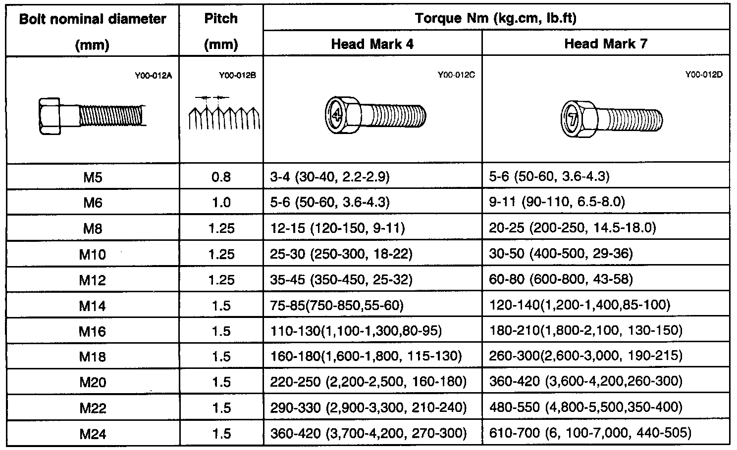 1. The torques shown in the table are standard values applicable to tightening performed under the following conditions: