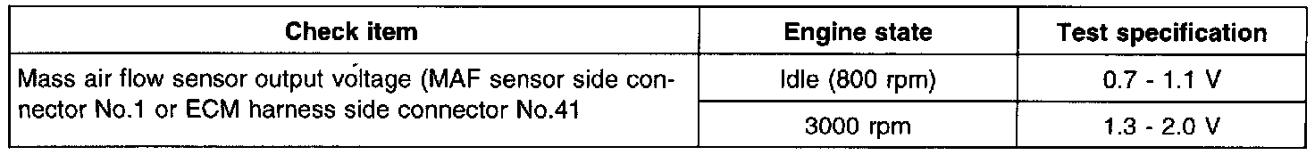3. If the engine can be idle even if the MAF sensor output voltage is out of specification, check for the following conditions;