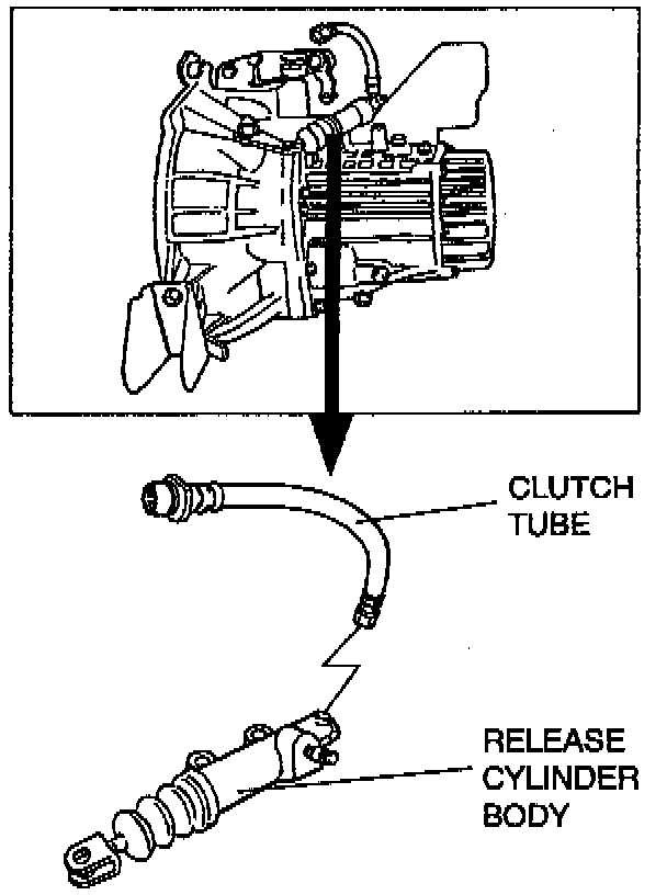 1. Disconnect the clutch fluid tube at the clutch release cylinder.